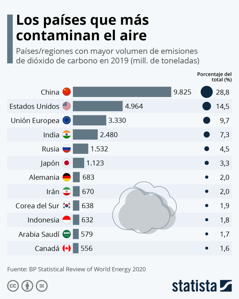 En verdad, que China y Estados Unidos se sienten en la misma mesa y conformen una especie de “G2 ambiental” resulta un imperativo para el mundo que se viene, ya que se trata de los dos países que más emisiones de gases de efecto invernadero emanan a la atmósfera, como se observa en el siguiente gráfico.
